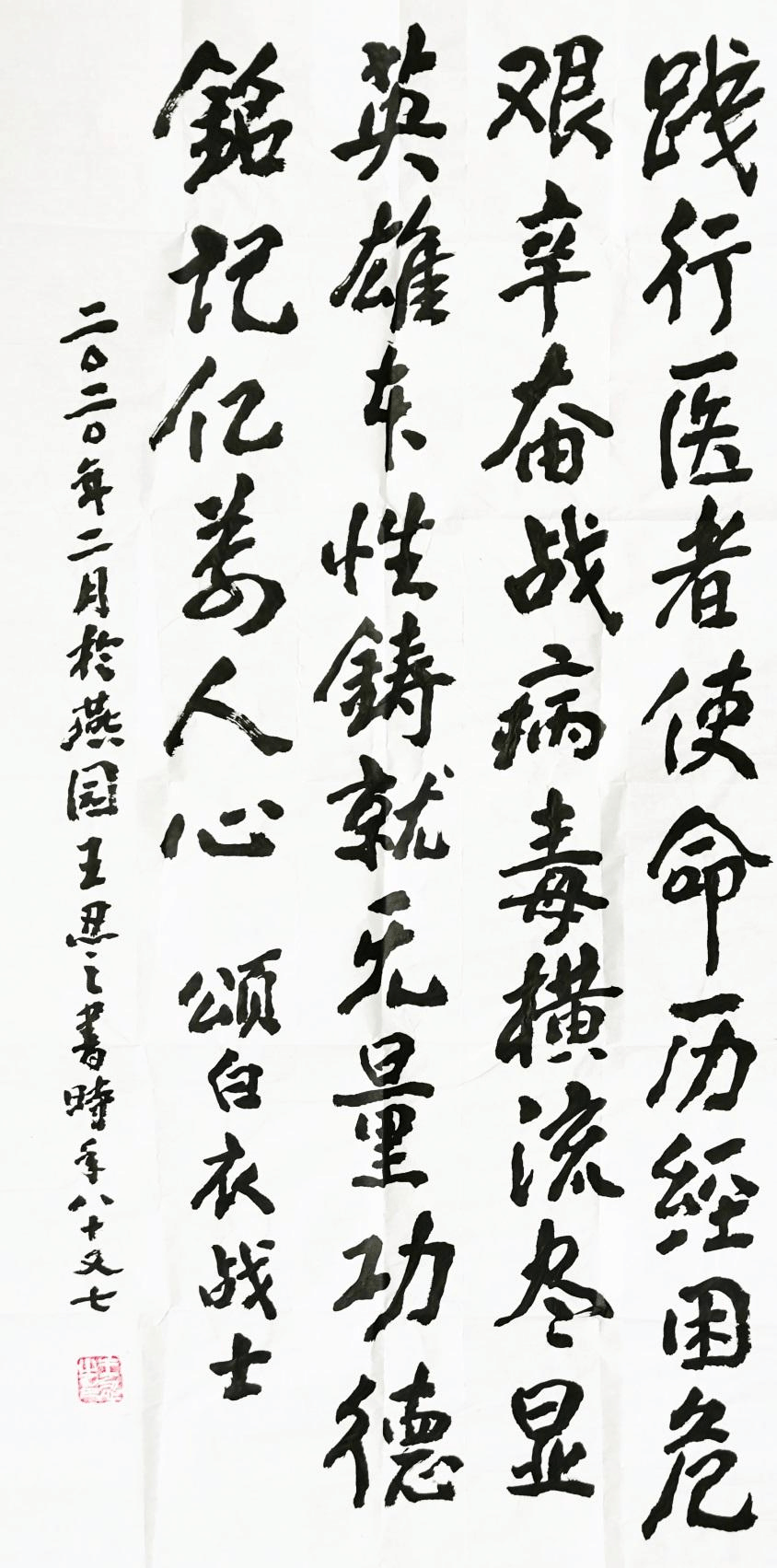 书画研究所所长王建源表示,“作为一名共产党员,在疫情特殊时期理应做出表率。希望能以自己擅长的艺术,为抗击疫情鼓劲加油,传递必胜信念。”