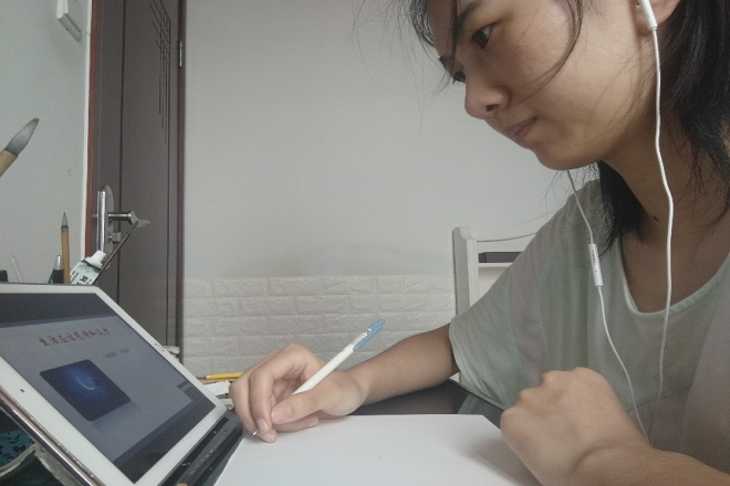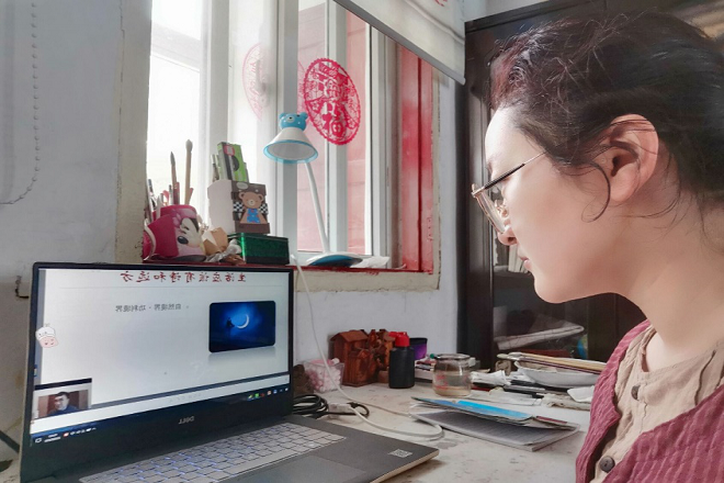 学生认真观看云讲座
