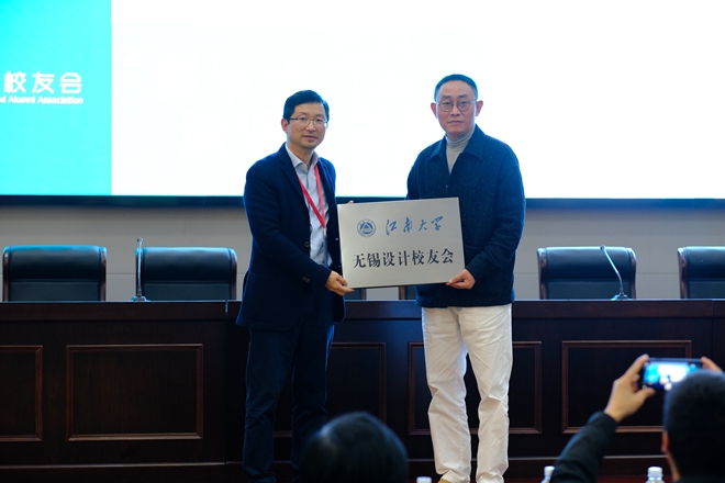 无锡设计校友会会长谈建忠授会牌。窦新华为抖阴