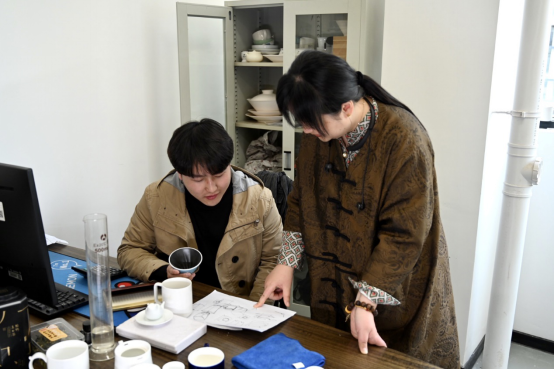 系统创新与设计战略研究团队朱琪颖副教授、陈香副教授携研究生针对中国文化与工业制造结合过程中对创意设计的实际需求,开展基于中国风格共性的讨论,推进中国风陶瓷设计及智能化、高端化发展的中期设计工作。