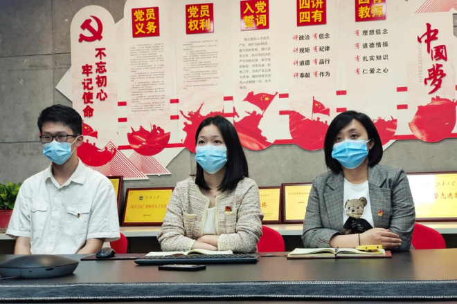分团委兼职副书记董玉妹、100余名团学骨干线上参会,并在线上开展热议。
