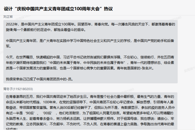 师生线上观看并热议庆祝中国共青团成立100周年大会