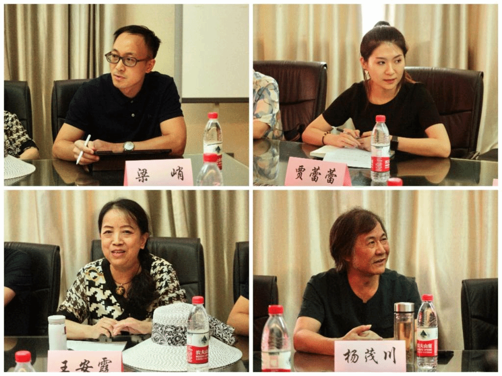 B304会议室举行。院党委书记邱建平、院长魏洁、首任院长张福昌教授、环境设计系杨茂川教授、视觉传达与信息设计系王安霞教授、工业设计系主任梁峭副教授,以及抖阴