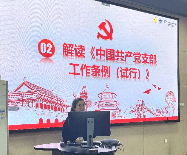 分团委书记吴雨琛带领与会人员共同学习《中国共产党党员教育管理工作条例》。她指出《条例》是新时代党员教育管理工作的基本遵循,对于提高党员队伍建设质量和激发党组织的生机活力都具有十分重要的意义,并深入浅出的介绍了《条例》的内容,重点解读了党员教育基本任务、党员日常教育管理主要方式和党员监督和组织处置等三个部分,叮嘱各位支部委员能够带领支部党员充分掌握《条例》的各项内容,夯实理论功底,筑牢思想根基,支部全体党员真正做到不仅在组织上入党,更争取在思想上入党,在行动上入党。