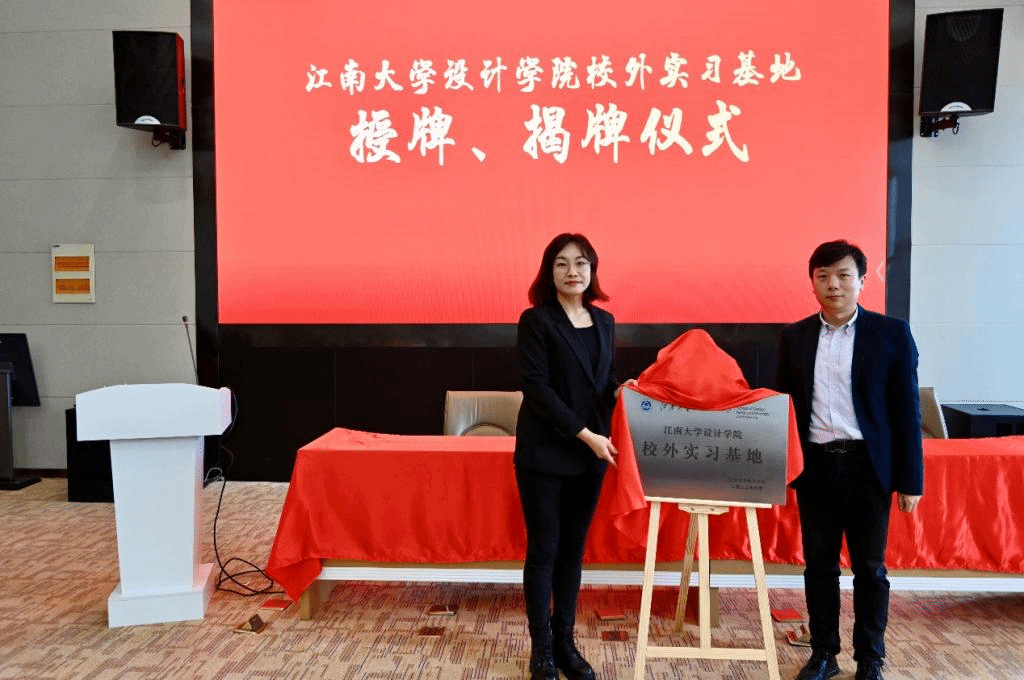 环境设计系主任刘佳与景观所所长祝悦共同为校外实习基地揭牌。