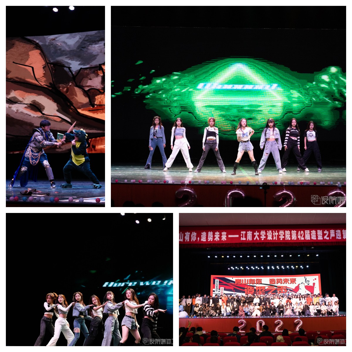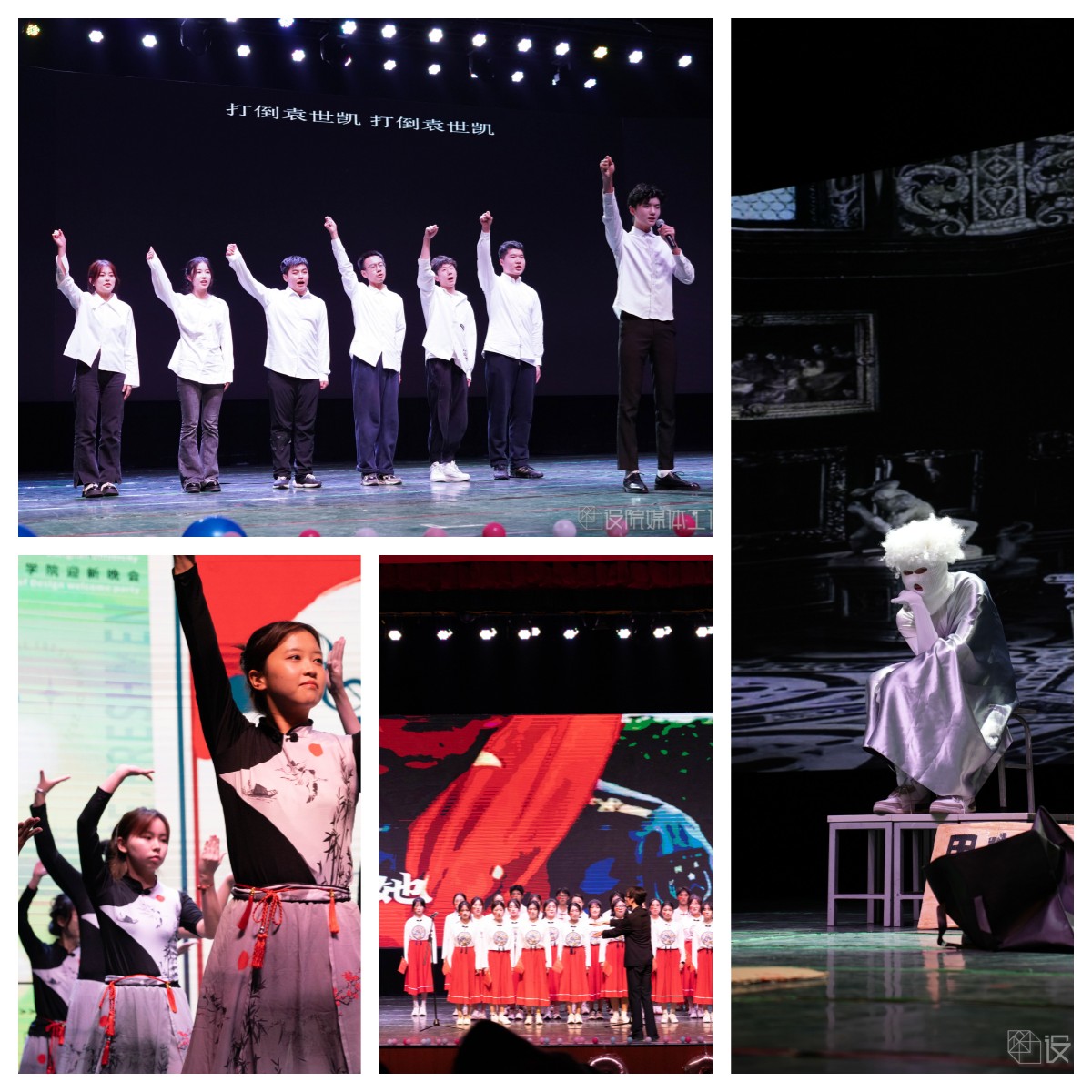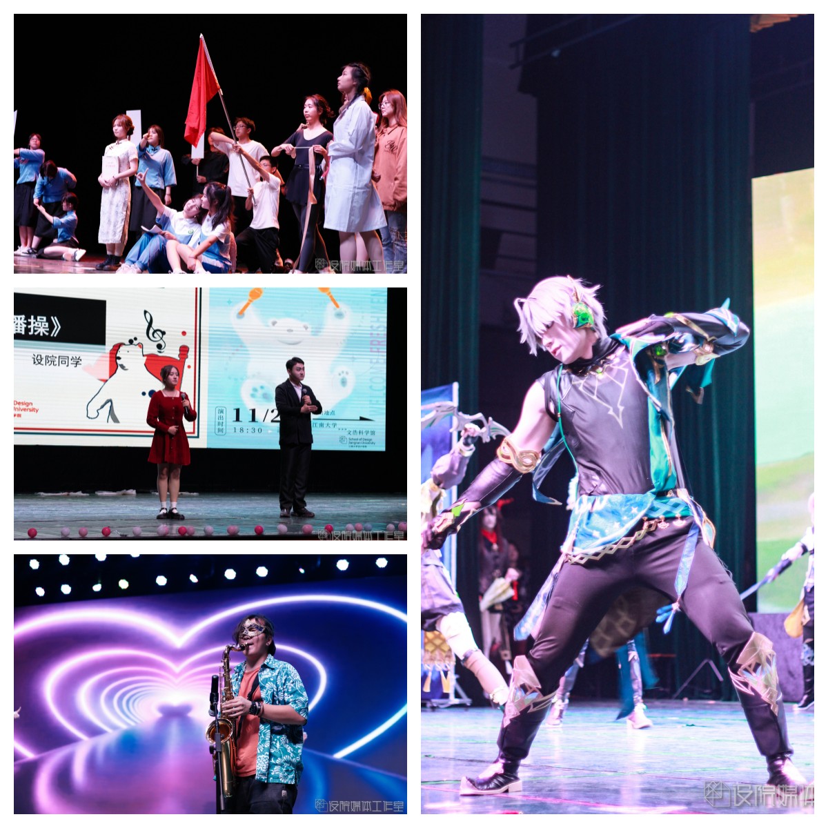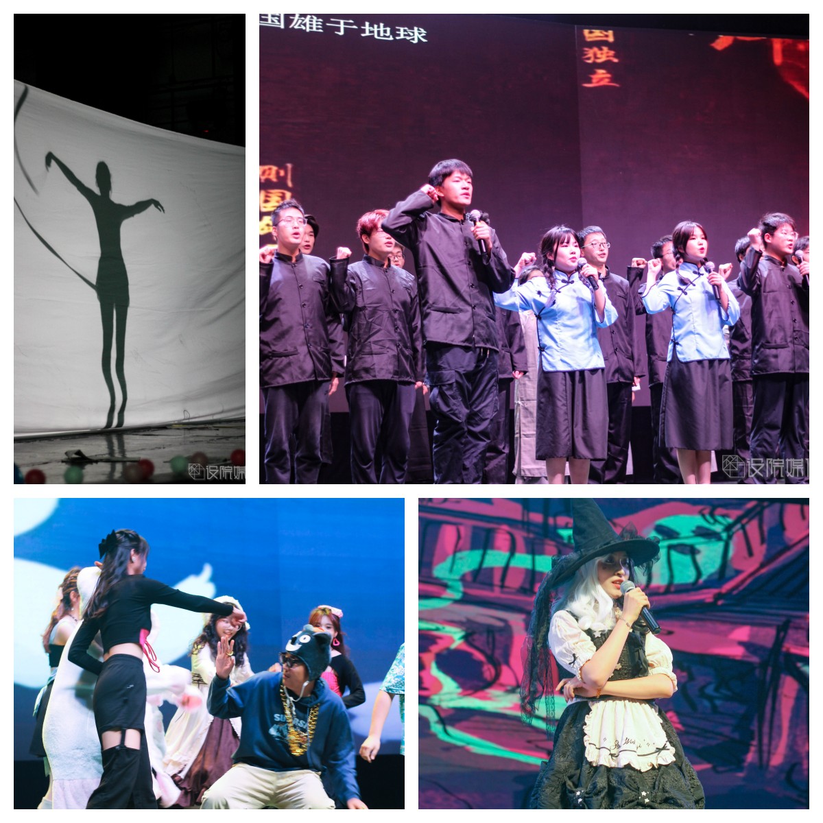朗诵《少年中国说》让我们满腔热血,情景剧《博物馆奇妙夜》别出心裁,歌舞《童年回忆》带我们梦回童年,《名画再现》上演《八女投江》的动人故事,幕布话剧《光映时代》起承中国百年路,转合民族奋斗史,《设院学生日常生活图鉴》上演“设院探戈”,舞台剧《达拉崩吧设院分吧》被全新演绎,《CHINA-X》服装系学生为我们带来一次精彩的走秀,文艺部带来娓娓动听的歌曲《昌》和令人惊艳的舞蹈《山河画卷》,在最激动人心的中场抽奖环节,一个个彩球抛起,随着“锦鲤们”的陆续揭晓,现场气氛在掌声与欢呼声中变得越来越热烈。新的艺术表演形式wota艺《万神花火》让我们眼前一亮,舞台剧《迪士尼后妈茶话会》演绎反派的魔幻童话故事,舞蹈《Helicopter》彰显青春风采,话剧《我们说好不内卷》带来一场反内卷小分队的“战斗”,勿氧器乐团带来的歌曲《海芋恋》温柔浪漫,话剧《反诈银行》上演爱国老人和正义银行的爆笑故事,设院同学们的合唱《有我》在歌声里彰显青春力量,A108cos社带来的《虚空劫火》更是燃爆全场,最后,抖阴