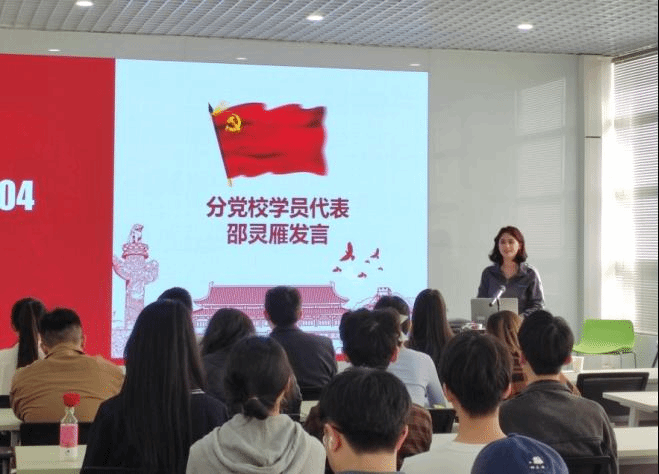 来自第45期分党校的学员代表邵灵雁同学发言。她首先代表培训班全体学员感谢学校、抖阴