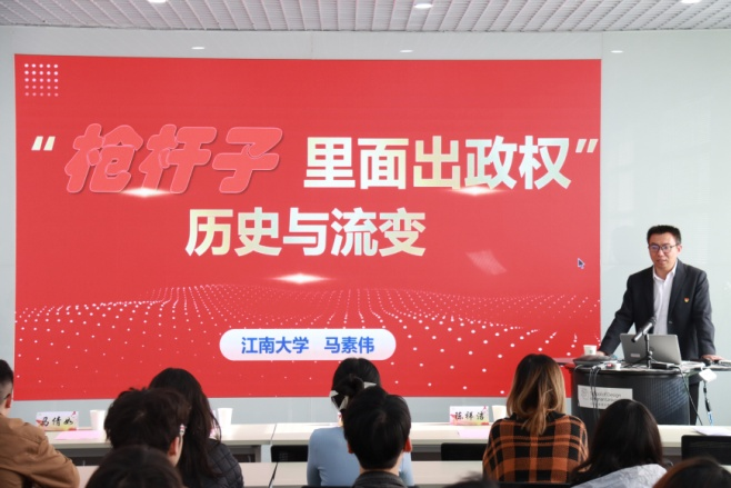 发展规划与学科建设处副处长马素伟以《“枪杆子里面出政权”:历史与流变》为题为分党校学员带来党课第一讲。他首先结合党的二十大报告的关键词“开创国防和军队现代化新局面”分析了“枪杆子里面出政权”这段奋斗史的现代意义,从没有枪杆子的“痛悟”、枪杆子理论的“提出”、武装夺取政权“道路”、枪杆子出政权的“辩证法”等四个板块带领学员们一同回顾了在改变中国命运的解放战争中,共产党战胜国民党最终取得中国革命最后胜利的浴血奋战之路,并深刻剖析胜利原因“关键不在枪杆子硬不硬,而在谁站在人民的立场代表人民”。他也借此与在场学员重温共产党人“为中国人民谋幸福,为中华民族谋复兴”的初心和使命,勉励学员们要时刻牢记习近平总书记对青年一代的嘱托,把个人的理想追求融入党和国家事业之中,牢固树立为人民而奋斗的目标,并在理想的指引下笃实前行,让青春年华在为国家、为人民的奉献中焕发出绚丽光彩。马处长的党课内容翔实、务实生动,使得同学们热情高涨,受益匪浅。在热烈的掌声中,第一讲党课圆满结束。