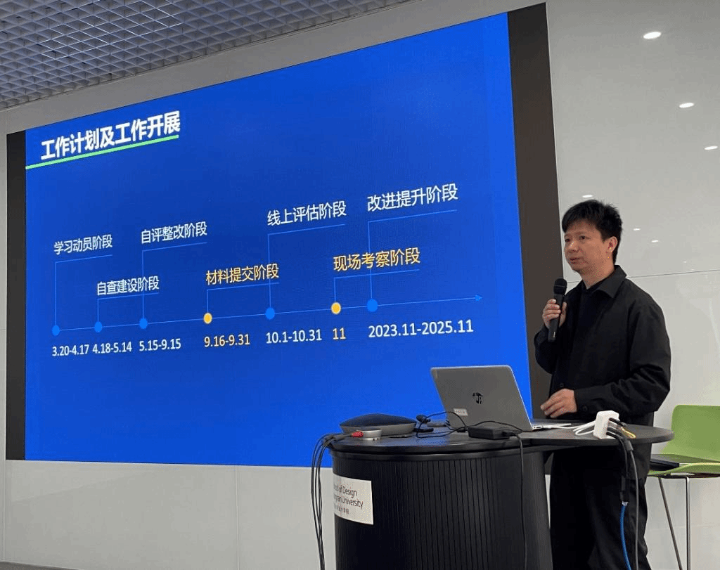 下一步工作提出了要求:要进一步认识评估工作的重要性,高度重视,按照时间节点把工作细节落实好,定期组织讨论,扎实推进工作进展;要查摆问题,提出整改举措,做到从上到下齐心协力,将评估工作融入到本科教育教学的全过程,以评促建、以评促管、以评促改、以评促强,积极推动设计学科的高质量发展。
