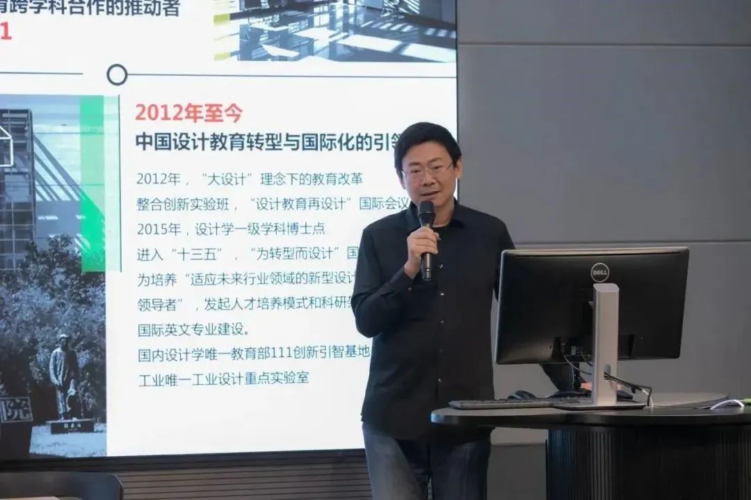 揭牌仪式后,李晓文做“设计管理-企业间设计体系的认知差异”的主题演讲。他通过自身的行业经历对比内外资企业设计体系的差异、从标准、导向、人员、市场环境等方面浅析两者间的差异性,并就相关差异导致的设计结果做出比较。对现状的对比描述向同学展示设计管理的重要性,为与会师生带来了设计管理对企业发展重要性的深度理解和深度思考。
