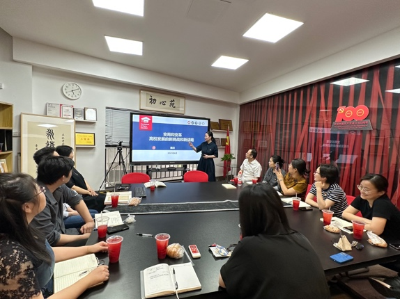 吴祐昕首先领学了《习近平总书记5月29日在中共中央政治局第五次集体学习时的重要讲话》,她指出,习近平总书记在讲话中强调,我们要建设的教育强国,是中国特色社会主义教育强国”,党的二十大强调“加快建设教育强国”,并提出到2035年“建成教育强国”的目标。在我们建设教育强国的进程中,“中国特色社会主义教育强国”的重要论断,为教育发展锚定了清晰而坚定的战略定位,意义重大且深远。