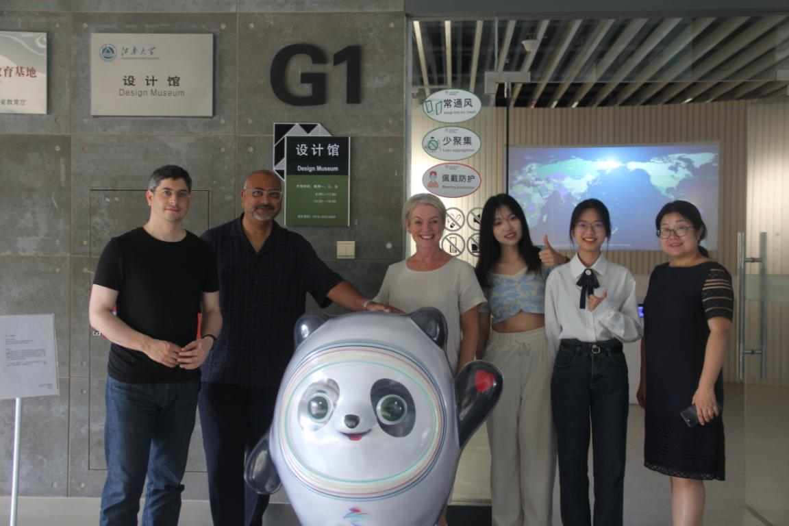 前院长Robert Ed D’Souza、执行副院长及全球智能设计实验室联合负责人Sunil Manghani、设计与创新产业系系主任Nickie Hirst、设计系研究主任及全球智能设计实验室联合负责人Yuanyuan YIN一行来抖阴
