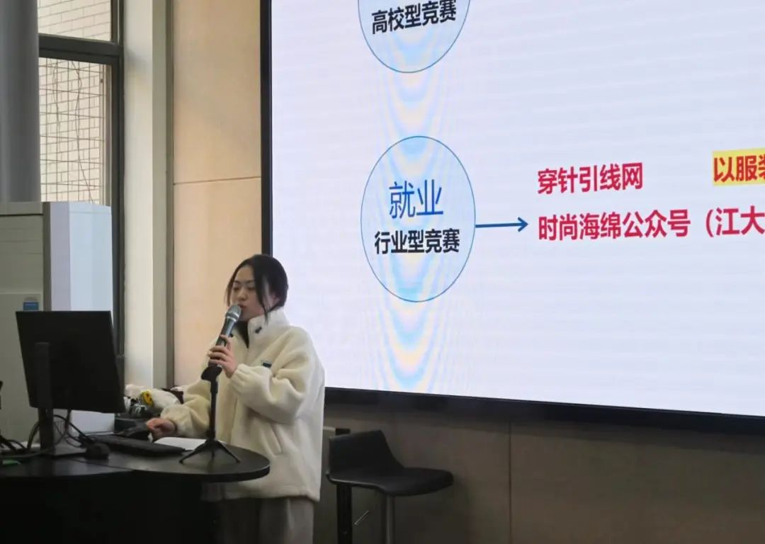 A104顺利举行,服装系主任柯莹老师、副系主任唐颖老师、邢乐老师莅临现场,服装与服饰设计专业的黄梓萌和服装设计与工程专业的蒋阗行为大家进行经验分享和答疑解惑。现场气氛活跃,同学们热情积极,展现出设院学子钻研向上的学习热情。
