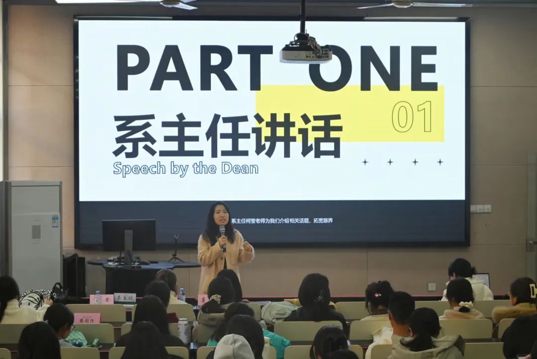 服装专业的特点和专业构成。她指出,艺术与科技联系紧密是服装系的一大特点。服装的有形式设计体现了艺术之美,这属于服装与服饰设计专业的学习方向。服装的功能性体现了科技之力,这属于服装设计与工程专业的研究内容。服装系的两个专业都含有交叉学科的性质,柯莹老师希望同学们基于自己的兴趣,助力服装艺术与科技双向融合发展。