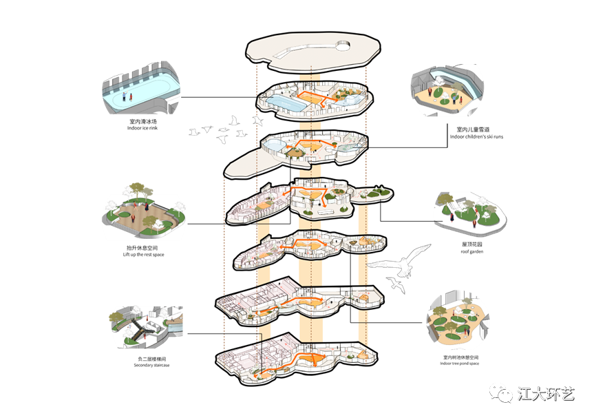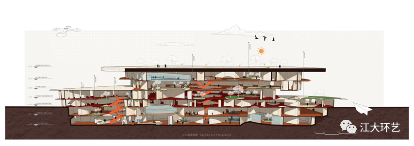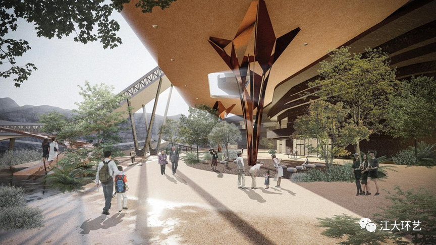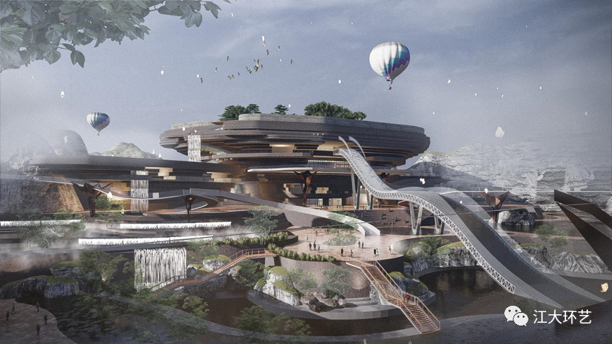 这次获得金奖的作品《Fuxin Haizhou Mine Identity Reconstruction: Geological and Cultural Center Complex》的主题是“基于多元共存、生态共生、未来共享理念下的矿坑城市综合体设计”。选题结合我国发展现状,围绕资源枯竭型城市面对产业升级转型所遇到的问题,同时响应了国家双碳目标的战略方针而展开。设计通过空间环境的营造,将新的建筑“消隐”于废弃的具有百年历史的阜新海州露天矿坑的环境中,作为“人造物”的建筑积极地介入环境的变化,展开空间的再造,满足新的功能需求与造型的表达,注入当地特色的地域地质文化气质的一个唤醒城市活力的地标性公共形象空间。