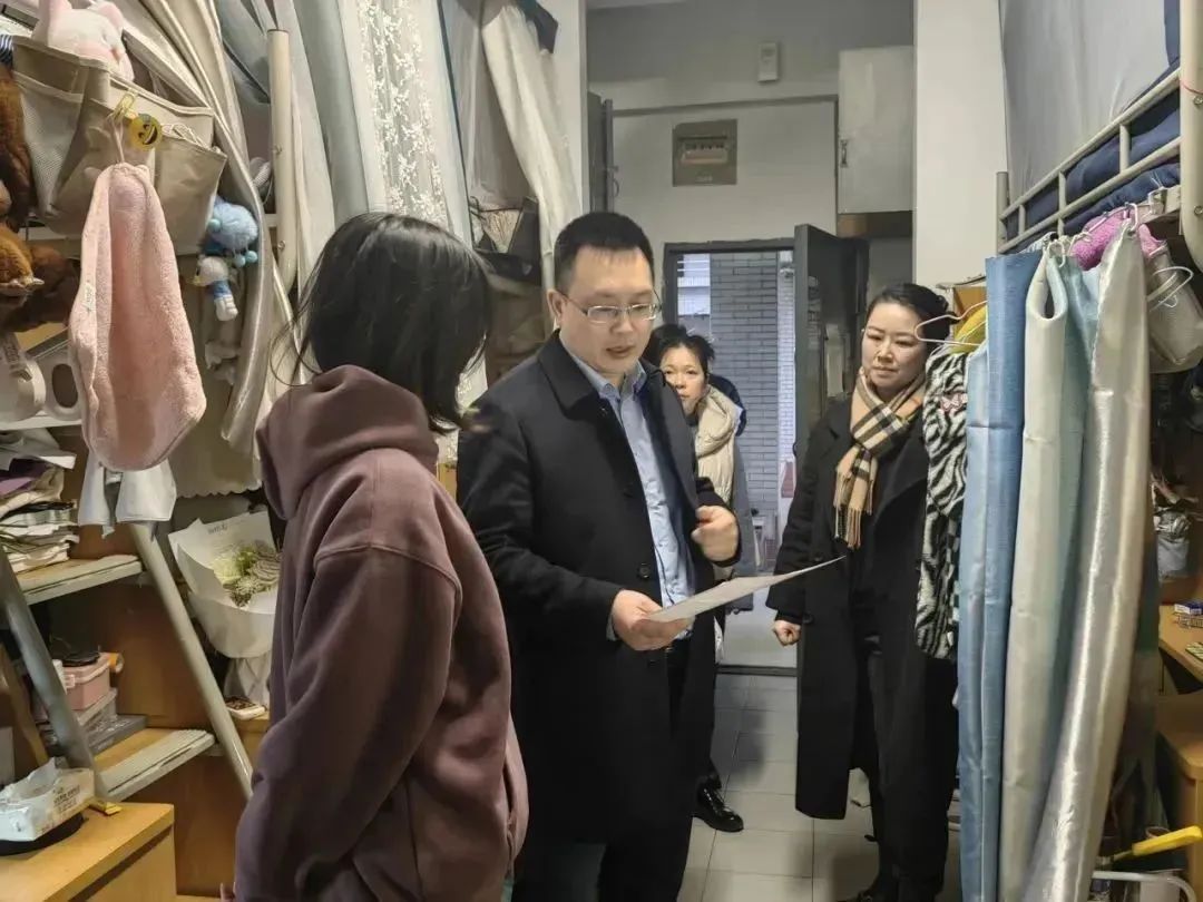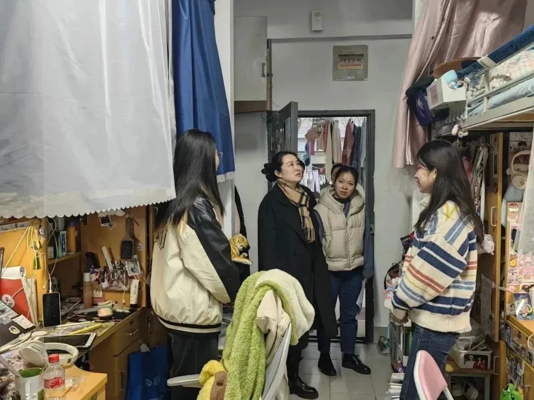 正在实施学生宿舍窗户安全改造工作。走访过程中,王维青书记、江琳娜副书记叮嘱同学们要切实提高个人安全意识,把宿舍用电防火安全放在第一位,同时也要保持良好的卫生环境,希望同学们共同营造文明、安全、和谐、友爱的宿舍氛围。