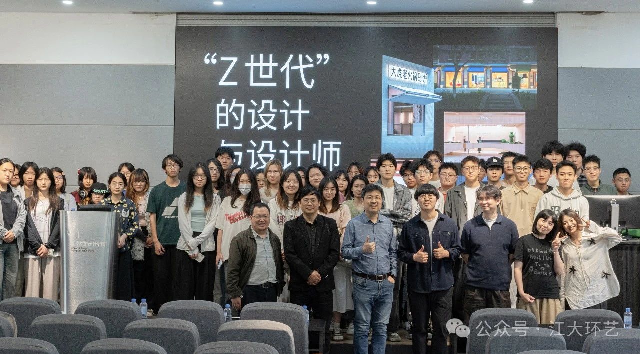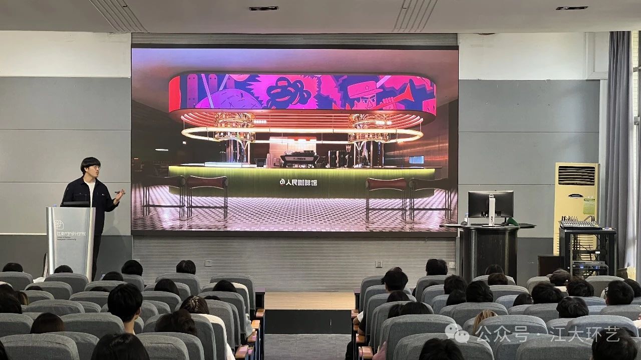一楼报告厅为环境设计专业的同学们带来一场名为《“Z世代”的设计与设计师》的讲座。环境设计系主任刘佳老师、副系主任宣炜老师,以及《品牌策划与空间设计》课程的任课老师姬琳、窦小敏、高亚峰参加了讲座与交流。