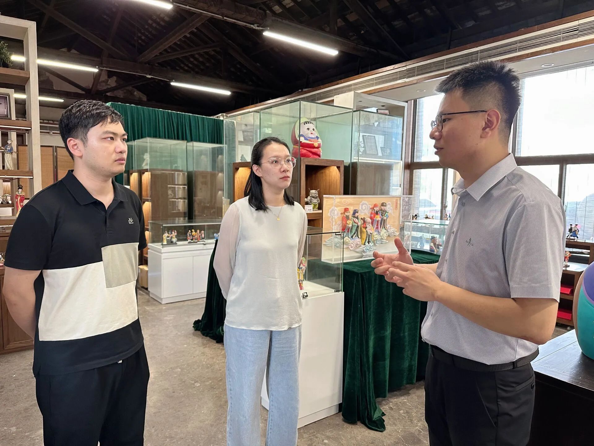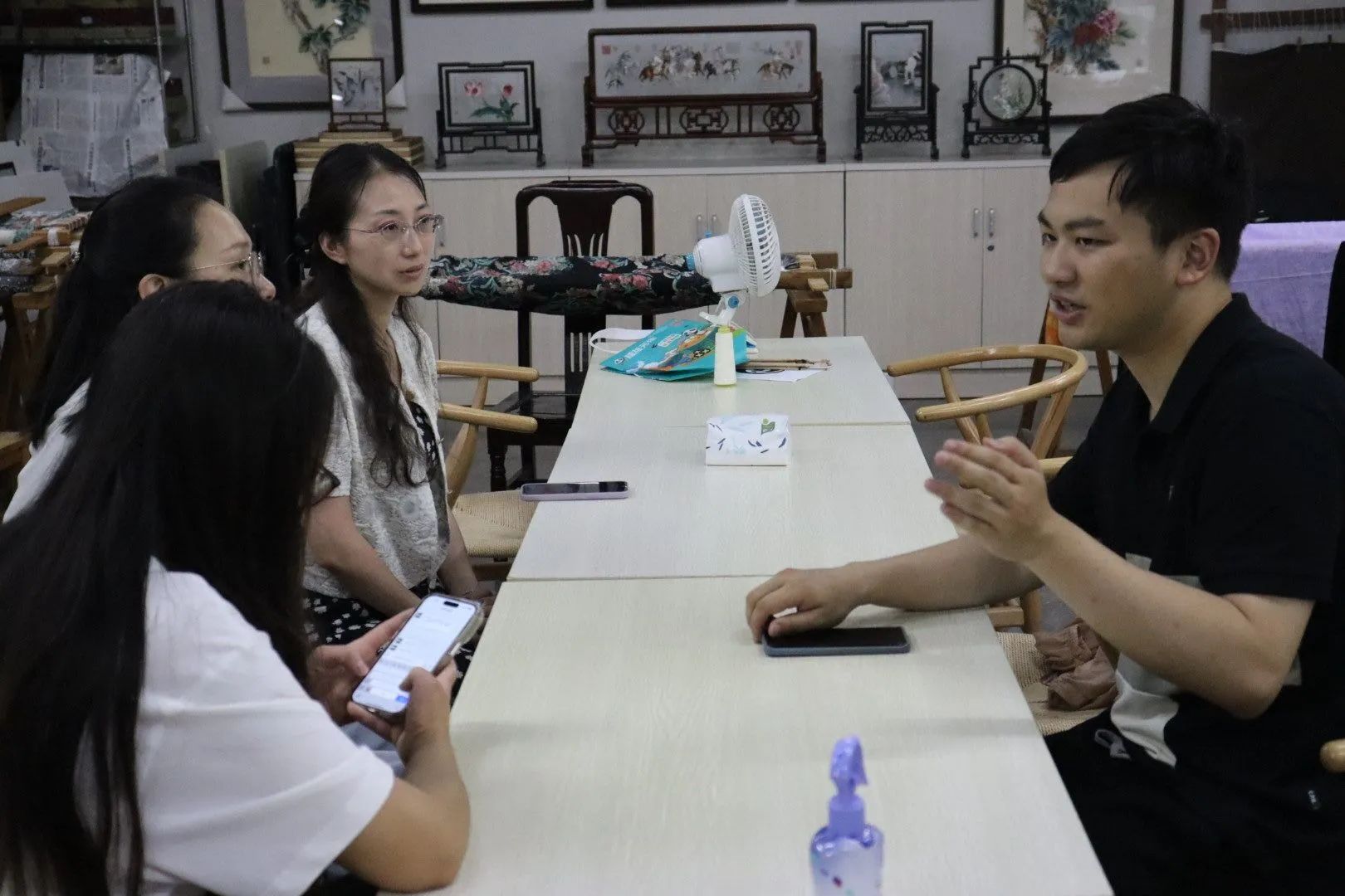 “手指上的中国”社会实践团队前往无锡惠山古镇调研非物质文化传承项目,惠山街道统战委员陆加贝、干事陆永吉带领实践团队寻访泥塑、锡绣、竹刻三项传统手艺的保护状态和传承情况。作为国家级非物质文化遗产名录所属保护项目,泥塑、锡绣、竹刻均有悠久的历史。听江南微雨,访古镇深处,历史的厚重和匠人的精巧在手工艺品上逐一体现,织就了无锡独有的文化气韵。