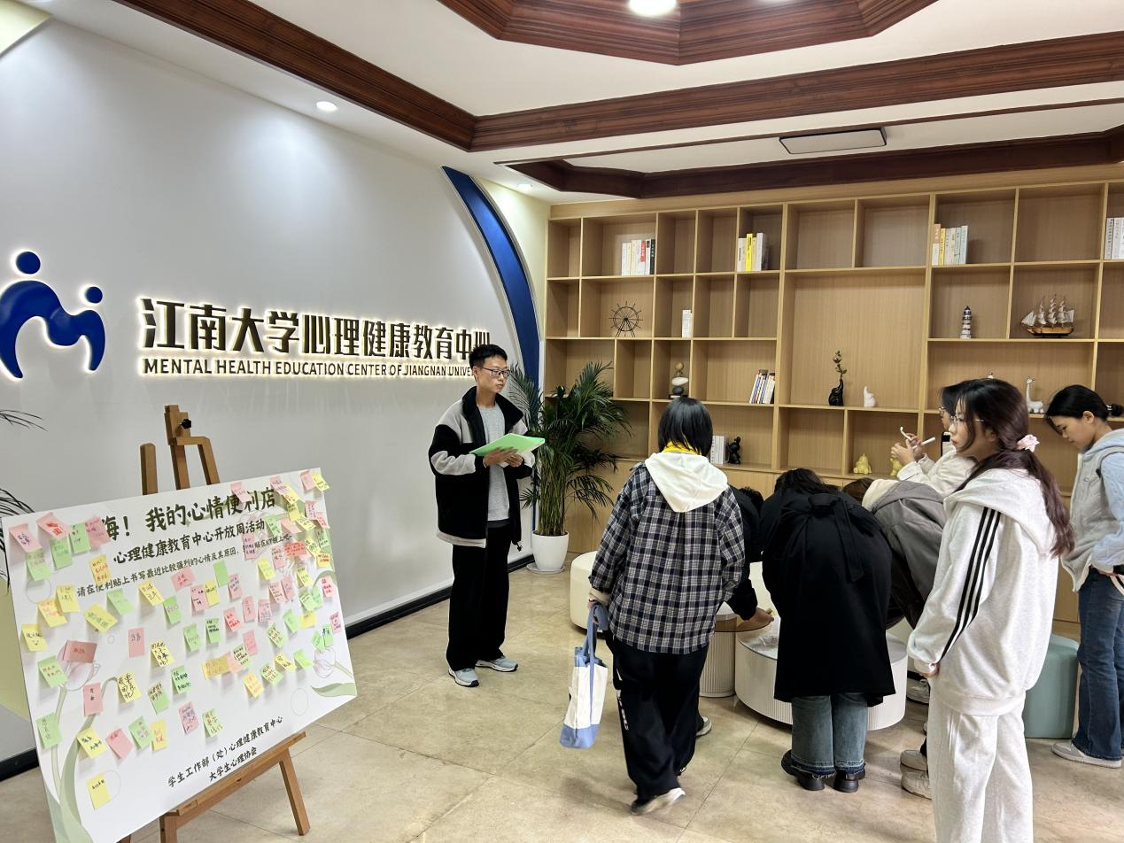 互动环节“嗨!我的心情便利店”让参与者通过领取便利贴,记录并分享自己近期的强烈情绪及其原因,以此促进情感的表达与共鸣。这一环节不仅让同学们更清晰地认识个人情感,还通过分享和互动减轻了心理负担,增强了心理健康意识。