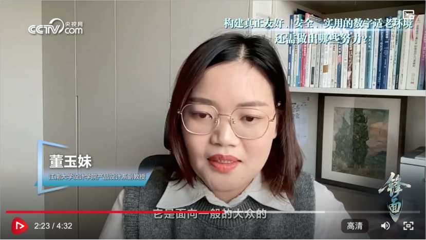 产品设计系董玉妹副教授作为适老化设计专家接受央视网的采访,分享了其对适老化改造的现状观察与设计建议。