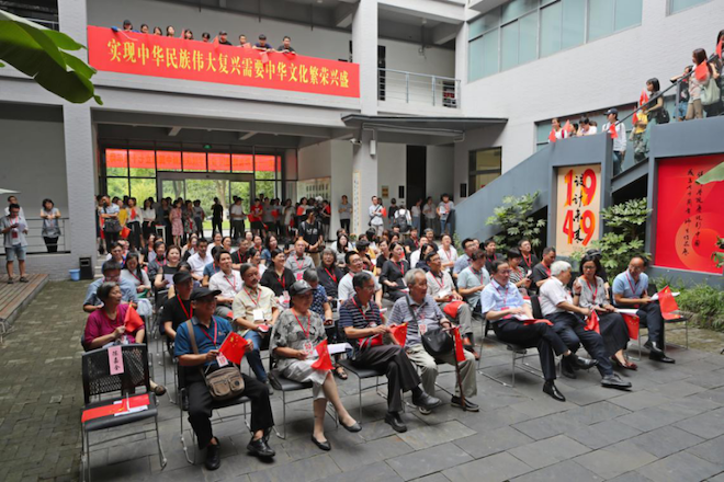 师生的家国情怀。全院师生的积极响应,围绕“设计未来—我和我的祖国”这一主题,聚焦新中国成立七十周年展开创作,本次展出作品共有教师(含退休12人)和学生70人计289件作品,形式包含书法、绘画海报、摄影、主题设计创作及雕塑壁画等多种样式。其后,全场人员观看了抖阴